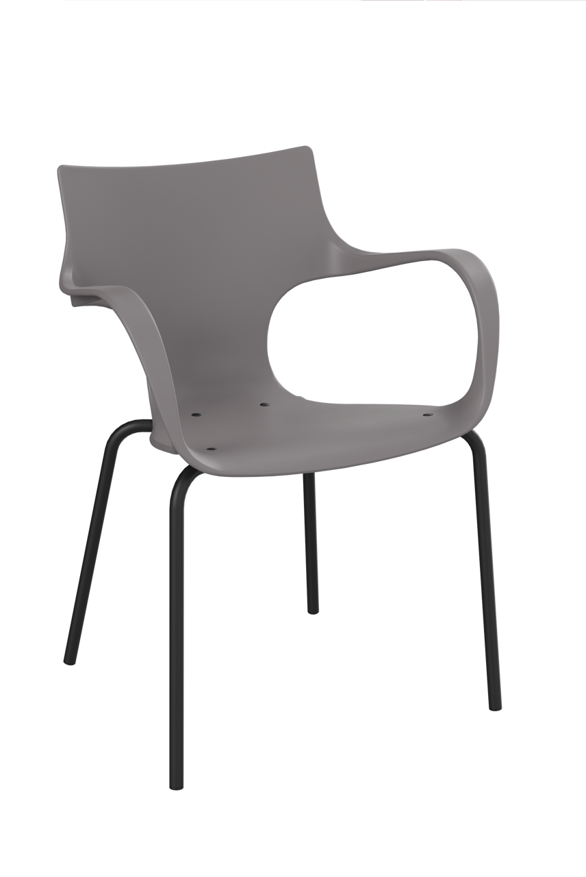 Der Jim ist schön, stark und handlich. Er hat eine mattschwarz pulverbeschichtete Metallbasis, eine organisch geformte Sitzfläche, die sehr bequem ist, aus Soft-Touch-Polypropylen besteht und ausschließlich aus recyceltem Kunststoff hergestellt wird. Dieser Stuhl eignet sich sehr gut für öffentliche Bereiche, wie die Kantine oder den Empfang, aber auch zu Hause. Es ist daher multifunktional. Darüber hinaus ist der Jim besonders langlebig. Der Jim