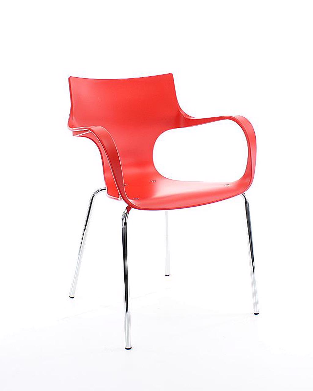 The Jim is beautiful, strong and convenient. It is fitted with a chrome metal base and an organic shaped bucket, which sits very comfortably and is made of soft-touch polypropylene. The chair is very suitable for public spaces, such as in the canteen or the reception, but also simply at home. It is therefore versatile. The Jim is also exceptionally sustainable. The Jim, with a chrome metal base is stackable to max. four chairs.