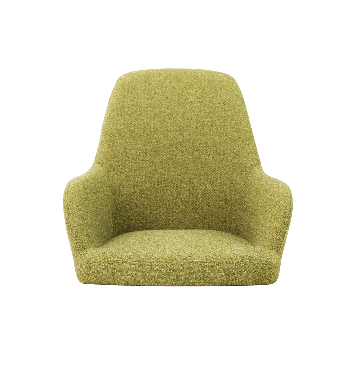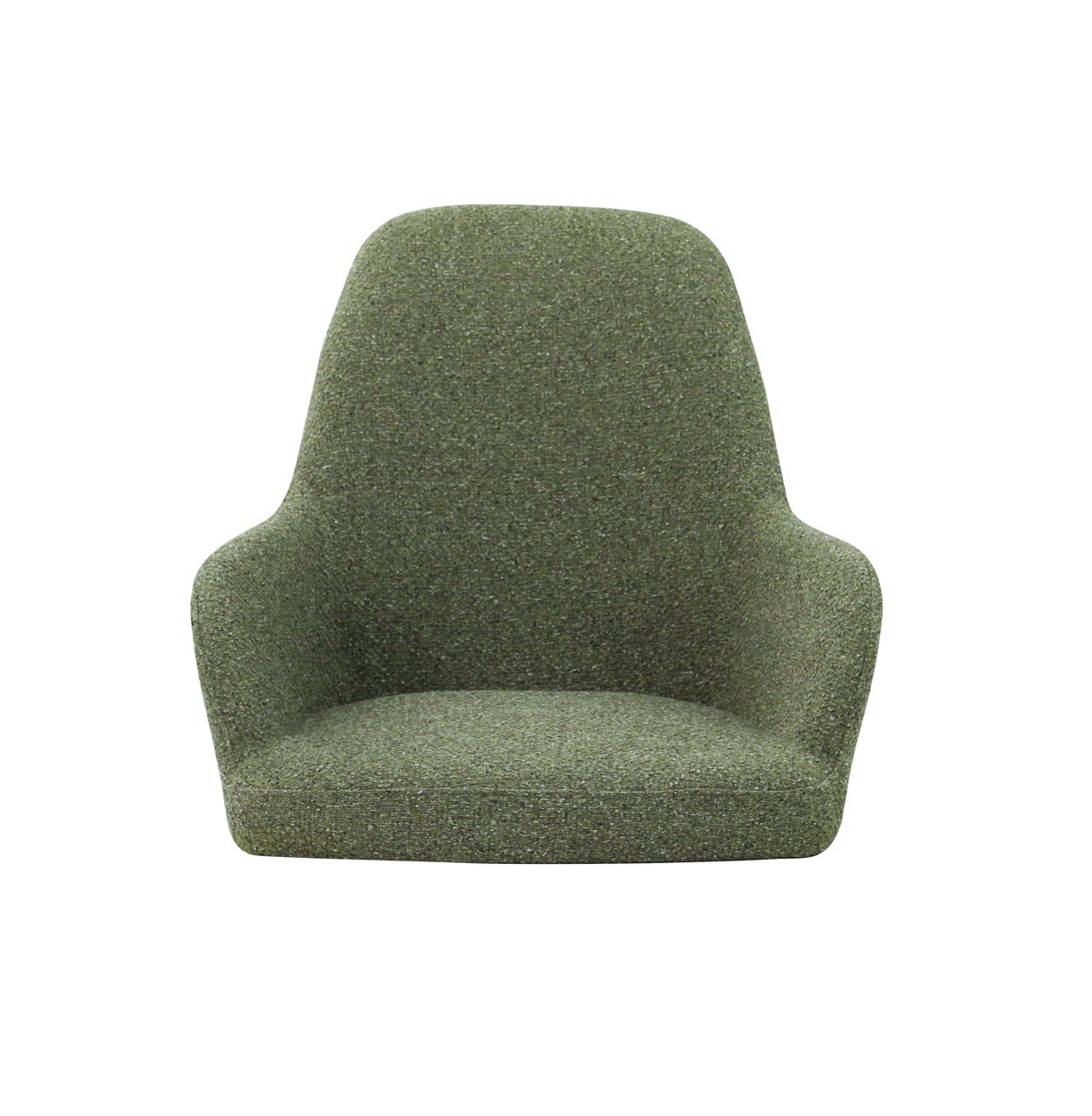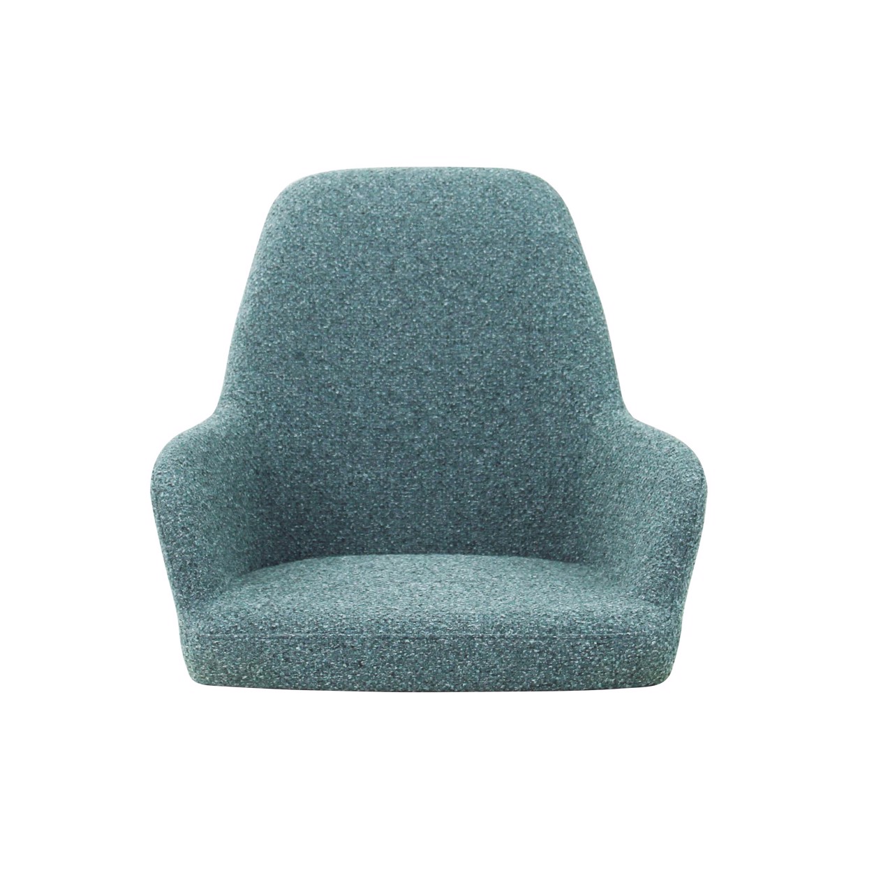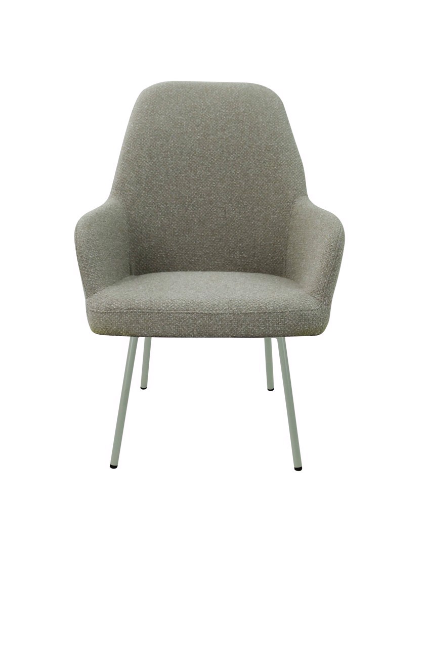 The seat shell can be supplied in 3 back heights and in 5 fabric colours of bouclé fabric Society. Society fabric is made of 100% recycled PP and is also 100% recyclable. The frame is also available in 5 colours for matching shade combinations to the fabric or a combination thereof.