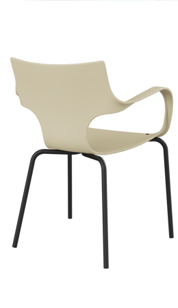 The Jim is beautiful, strong and handy. It has a matte black powder-coated metal base, organically shaped seat, which is very comfortable, is made of soft-touch polypropylene and produced exclusively from recycled plastic. This chair is very suitable for public areas, such as the canteen or reception, but also at home. It is therefore multi-functional. In addition, the Jim is particularly durable. The Jim Ivory with a matte black powder-coated metal frame is stackable up to 4 pieces.