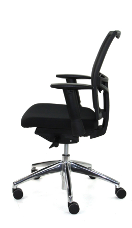 Avec le modèle 706 CS, rester confortablement assis pendant une longue période ne pose pas le moindre problème. Le mécanisme synchrone, avec réglage en fonction du poids, l’assise confort, avec profondeur réglable sur 6 cm, le dossier en résille, les accoudoirs obliques, réglables en hauteur, en largeur et en profondeur sont garants d’un confort optimal en cas de position assise pendant une longue période. Ce siège de bureau est en outre muni d’un piètement en aluminium poli, avec vérin à gaz chromé, et de roulettes multifonctions. Le modèle 706 CS est couvert d’origine par une garantie de 15 ans.