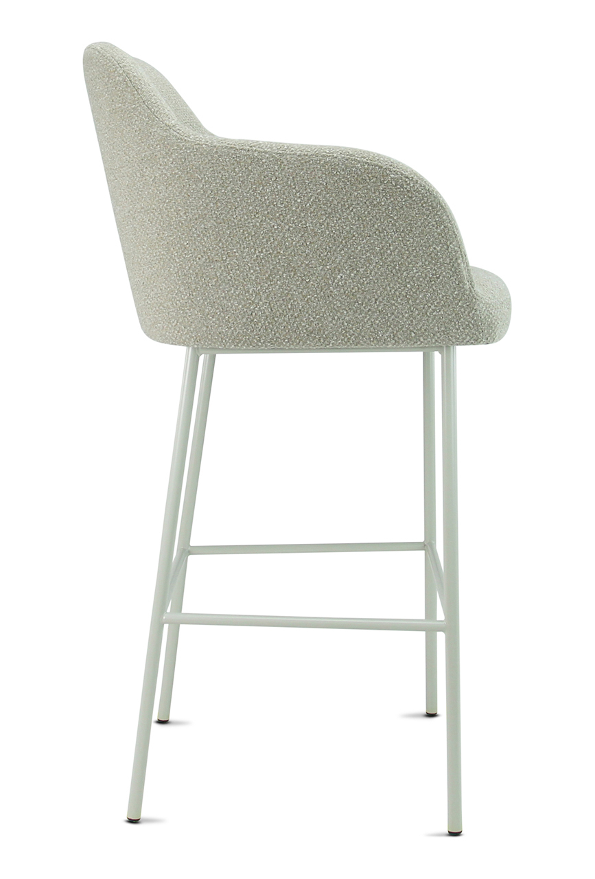 Ce tabouret de bar, confortable comme un fauteuil, attire tous les regards dans une cuisine, un restaurant ou une cantine d'entreprise. La coque d'assise peut être fournie en 3 hauteurs de dossier et en 5 couleurs de tissu bouclé Society. Le tissu Society est fabriqué en PP 100 % recyclé et est également 100 % recyclable. Le cadre est également disponible en 5 couleurs ton sur ton assorties au tissu ou à une combinaison des deux.