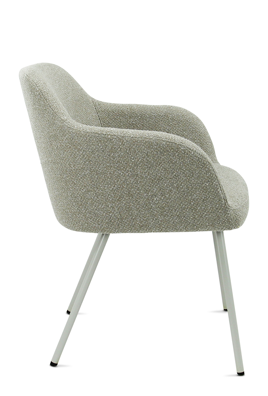 Moderne, confortable, multi-usages. La chaise à 4 pieds Lola en résumé. La coque d'assise est disponible en 3 hauteurs de dossier et se décline en 5 couleurs de tissu bouclé Society 100 % recyclé et recyclable. Le cadre métallique à 4 pieds est également disponible en 5 couleurs assorties aux 5 couleurs de tissu. Il est ainsi possible de réaliser 5 variantes ton sur ton ou une combinaison de couleurs. Lola est une gamme complète de produits dont les différents modèles peuvent être parfaitement combinés entre eux.