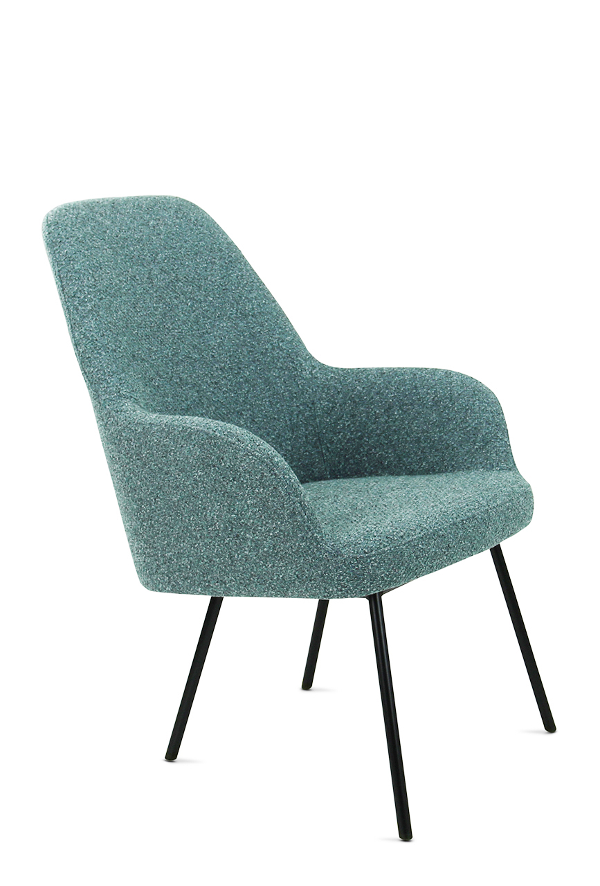 Fauteuil lounge moderne et épuré offrant un choix de coques d'assise avec 3 hauteurs de dossier dans 5 couleurs de tissu bouclé Society fabriqué à partir de matières 100 % recyclées et recyclables. Le cadre à 4 pieds est également disponible en 5 couleurs, ce qui permet de réaliser des combinaisons ton-sur-ton ou un mélange de couleurs. Lola est une gamme complète de produits dont les différents modèles peuvent être parfaitement combinés entre eux.