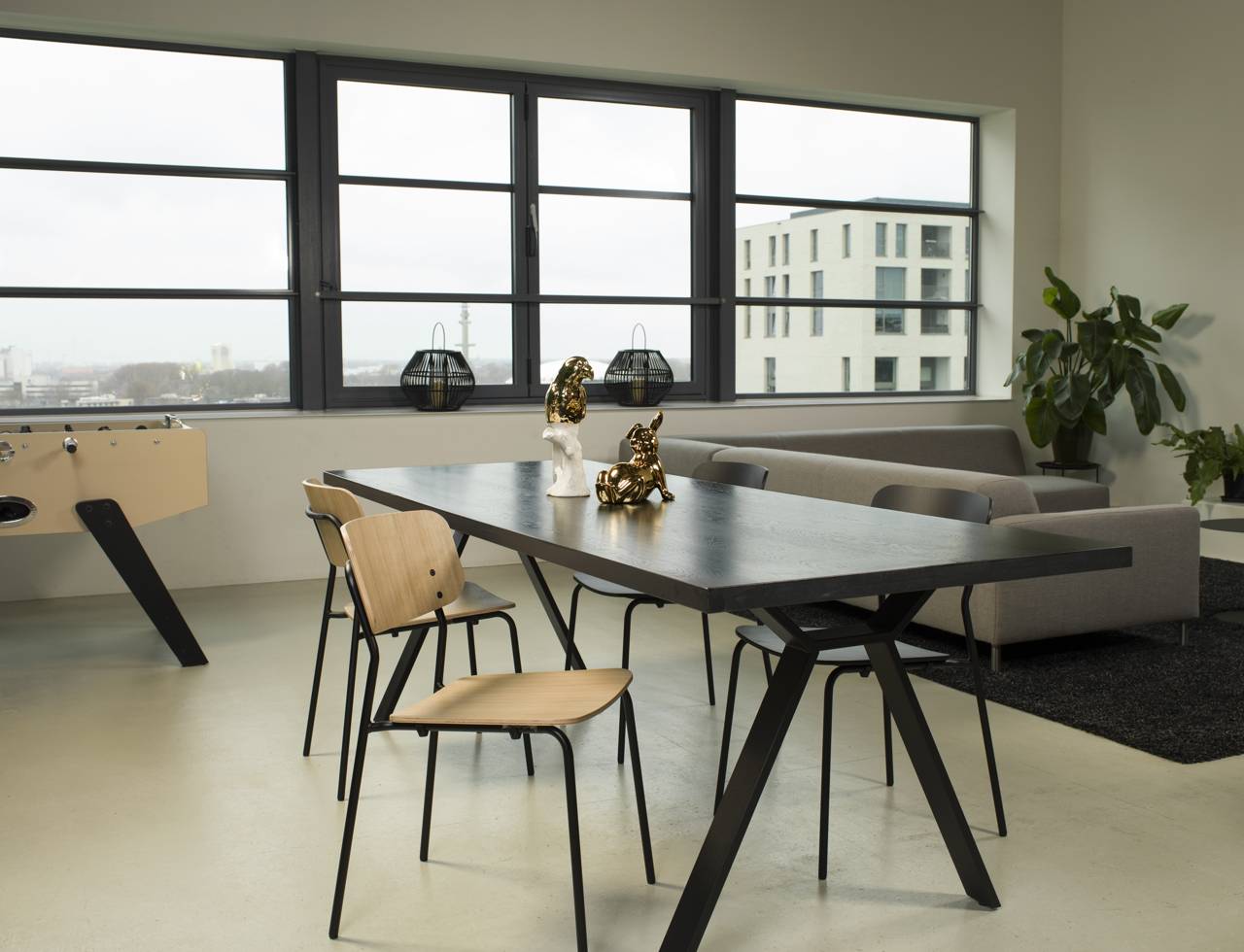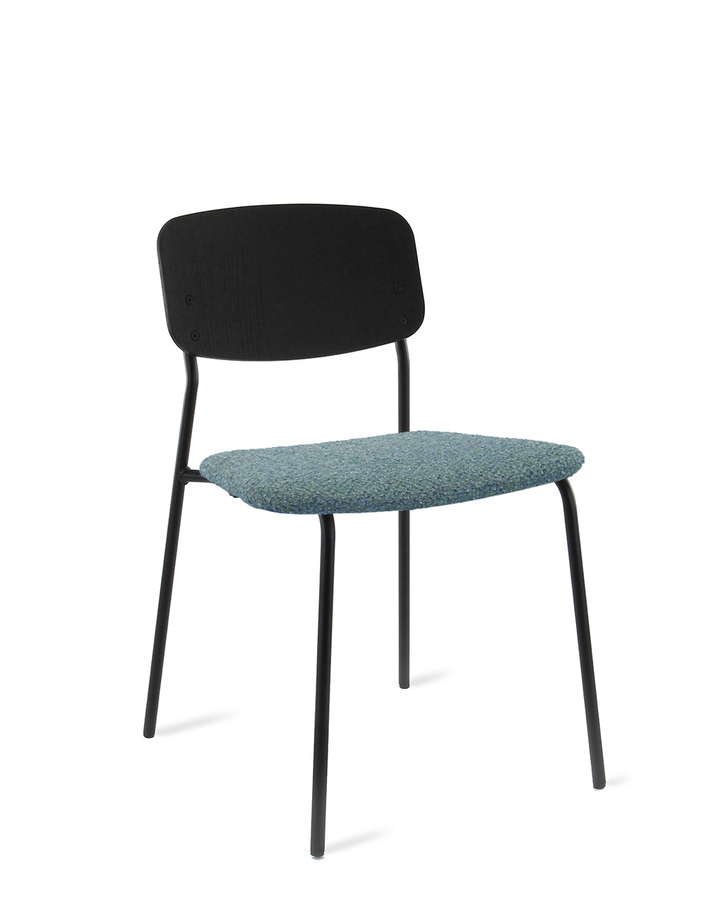 De BB-4 is een tijdloze design stoel voorzien van een mat zwart metalen 4-poots frame met poedercoated afwerking. De rugleuning en zitting zijn gemaakt van multiplex afgewerkt met zwart gelakt eiken. Deze stoel is stapelbaar tot 3 stuks en wordt volledig gemonteerd geleverd.