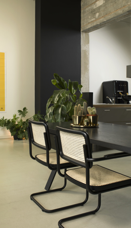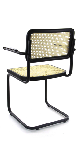 Voorzien van een rugleuning en zitting in het tijdloze webbing is de Francesca een echte Bauhaus klassieker en toch supermodern in deze tijd. De stoel heeft een mat zwart sledeframe en rand van de zitting en rugleuning, en is voorzien van armleggers gemaakt van gematteerd bakeliet.