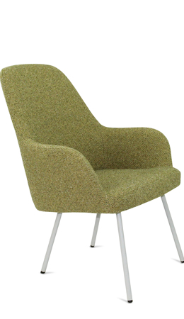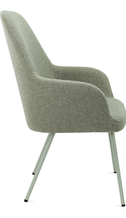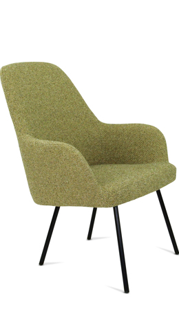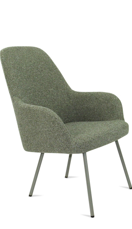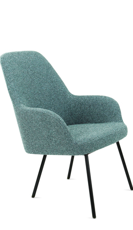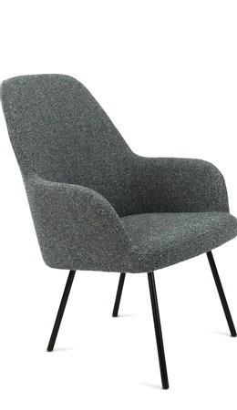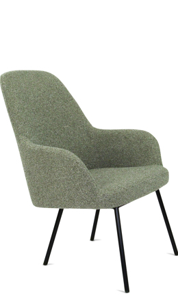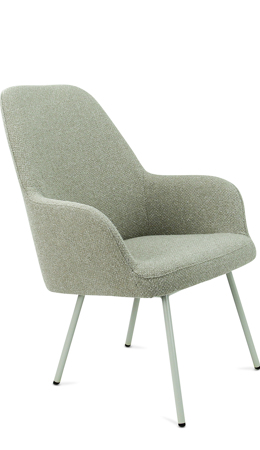 Moderne ranke lounge fauteuil waarbij keuze gemaakt kan worden in zitschaal met 3 rughoogten in 5 kleuren bouclé stof Society van 100% gerecycled en recyclebaar materiaal. Ook het 4-poot frame kan in 5 kleuren zodat ton sur ton combinaties te maken zijn of een mix van kleuren. Lola is een complete productserie waarvan de diverse modellen onderling perfect combineerbaar zijn.
