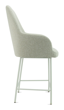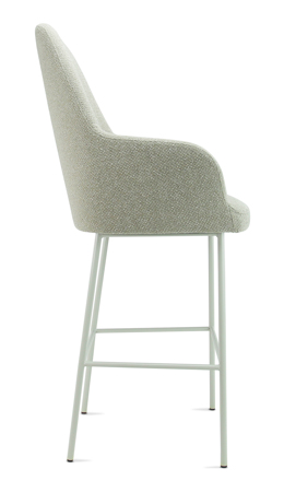 Deze als een comfortabele fauteuil zittende barkruk is een echte eyecatcher in elke keuken, horecagelegenheid of bedrijfskantine. De zitschaal kan in 3 rughoogten geleverd worden en in 5 stofkleuren van bouclé stof Society. Stof Society is gemaakt van 100% gerecycled PP en is tevens voor 100% recyclebaar. Ook het frame is leverbaar in 5 ton sur ton kleuren passend bij de stof of een combinatie hiervan.