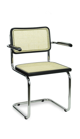 Voorzien van een rugleuning en zitting in het tijdloze webbing is de Francesca een echte Bauhaus klassieker en toch supermodern in deze tijd. De stoel heeft een chroom sledeframe en zwarte rand van de zitting en rugleuning, en is voorzien van armleggers gemaakt van gematteerd bakeliet.