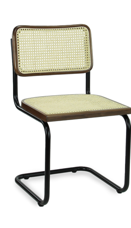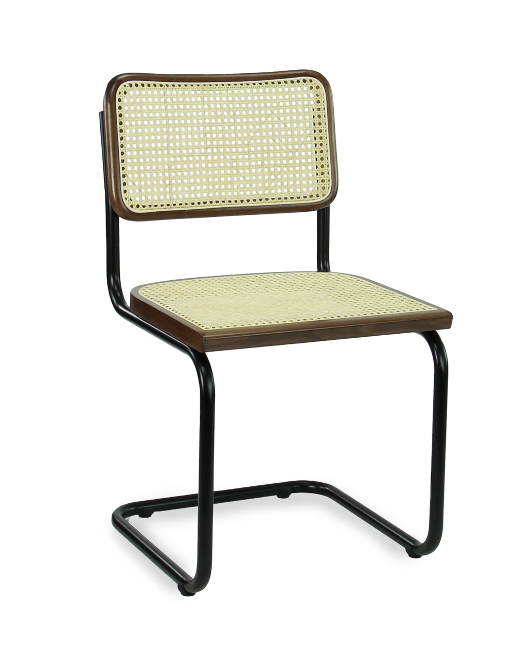 Voorzien van een rugleuning en zitting in het tijdloze webbing is de Francesca een echte Bauhaus klassieker en toch supermodern in deze tijd. De stoel heeft een mat zwart sledeframe en walnoot rand van de zitting en rugleuning. De zitting en rug zijn met echte webbing bespannen, en is geschikt voor zowel huiselijke en zakelijke interieurs.