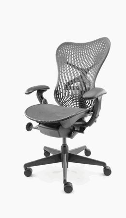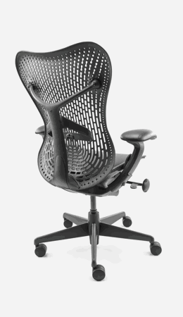 Herman Miller Mirra refurbished ergonomische bureaustoel is ontwerpen door het designteam Studio 7.5. De ontwerpers wilden een stoel creëren, die menselijke bewegingen ondersteunt. De mirra bureaustoel wordt één met je lichaam, de zitting en rugleuning passen zich meteen aan op de gebruiker. Door de ergonomische kwaliteiten en het aansprekende design heeft de Mirra al vele prijzen gewonnen.